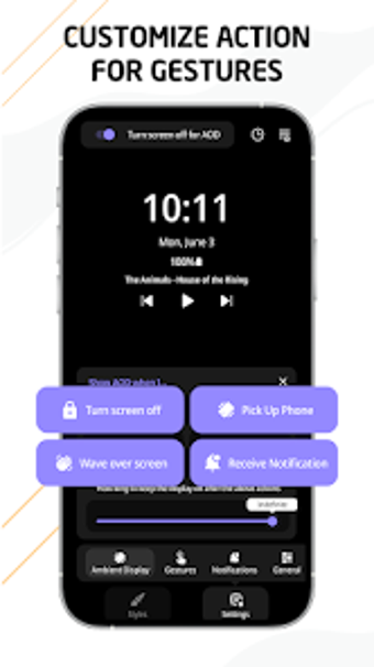 Ứng dụng nâng cao khả năng truy cập thông qua các điều khiển cử chỉ, cho phép thực hiện các hành động nhanh chóng như mở khóa điện thoại, bật đèn pin hoặc mở camera. Ngoài ra, người dùng có thể tạo các phím tắt cá nhân hóa cho các ứng dụng và danh bạ thường xuyên sử dụng, chọn từ nhiều kiểu chữ và nền sống động, và dễ dàng bật hoặc tắt các tiện ích chỉ với một cú chạm. Luôn Hiển Thị: AMOLED là lý tưởng cho những người dùng muốn tối ưu hóa màn hình điện thoại của họ với phong cách và chức năng.